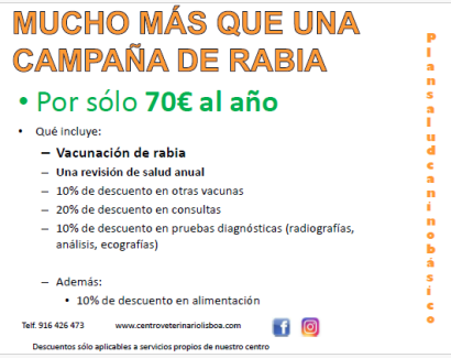 La vacunación de rabia es obligatoria, pero su salud es más que una inyección. Plan diseñado para ayudar a cuidarle